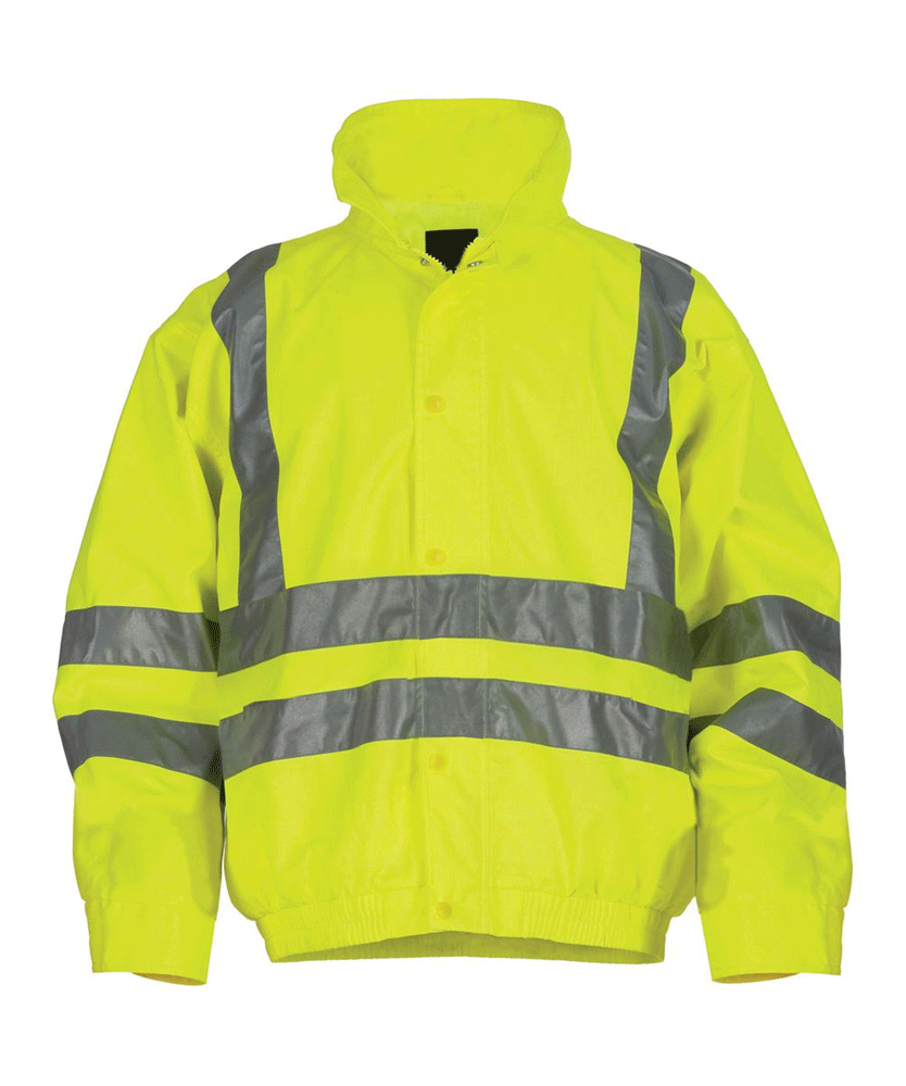 High-visibility Yellow shell is heavyweight polyester. With taped seams for protective clothing with sure-thing waterproofing